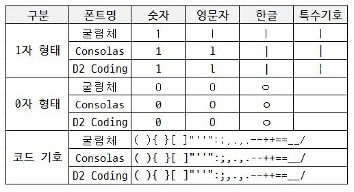 코딩을 할 때는 영어를 사용하기 때문에 구별이 어려운 글자가 없도록 하기 위해 별도로 폰트를 사용한다고 합니다. D2 Coding 글꼴을 가장 많이 사용하는 것 같습니다.