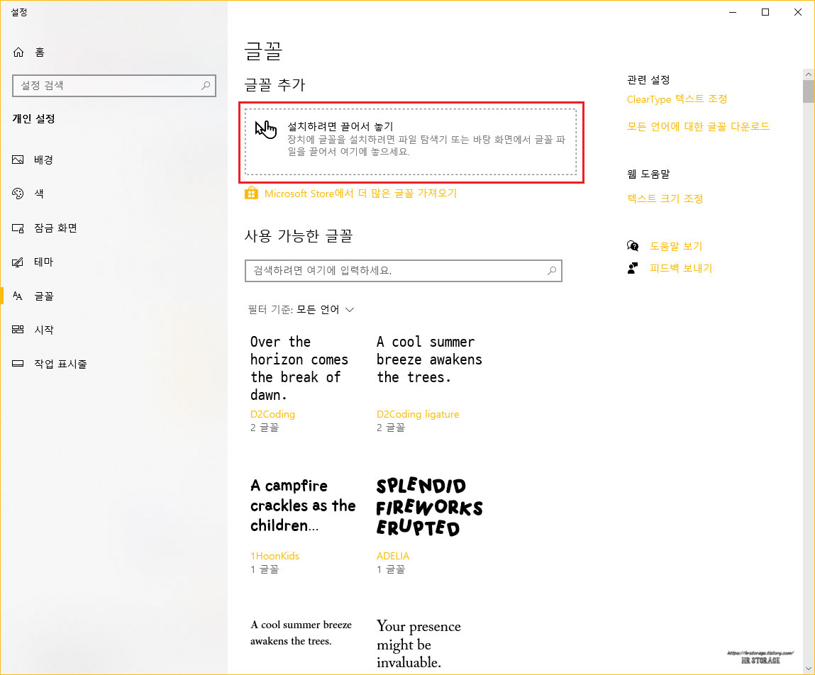 아래 링크에서 다운받으신 후, [글꼴 설정]에 들어가서 설치해주시면 됩니다.